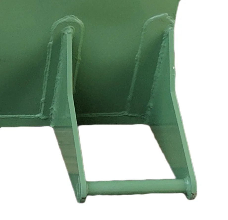 Lifting and pivot pins are welded to triangular shaped plates for maximum strength.